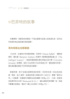 「巴菲特今年87歲,一路走來非常精彩,許多人欣賞的是他的人格特質、他的生活及管理哲學。我對他的幾個決策有點好奇,而這本書提供了解答,我以為巴菲特是天生俱成,原來也是經過挫折後的調整。」