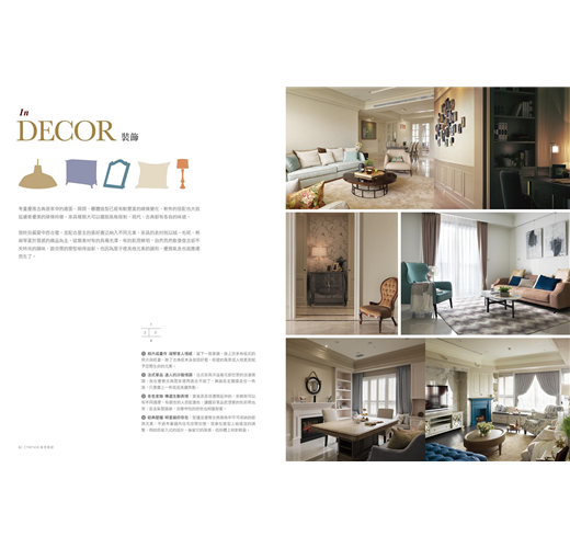 要裝修了但做起功課來,每張風格照片都好喜歡,不曉得自己到底要的是什麼?這次張馨特別歸納出包含「張馨美式」、「優雅古典」、「現代古典」、「華麗大器」、「現代多元」、「商業空間」等六大類別,從配色、造型、裝飾加以詳細解說,讓喜愛美式風格的讀者們,輕鬆在琳琅滿目的風格照片裡,輕鬆找到風格精髓。