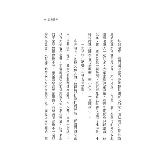每到過年,他們回老家的時候都是住在大伯家,因為兩百公尺外爺爺奶奶家那裡實在是太舊、太不方便了。但是由於住在外地的兩位叔叔也帶著家人一起回來,大伯家就算是寬敞,在過年期間也只能讓每一位兄弟、每一家將就住一個房間。夏荷感覺自己彷彿又回到了小時候,小時候她就是睡在父母房間的一張小床上,一直睡到小二。