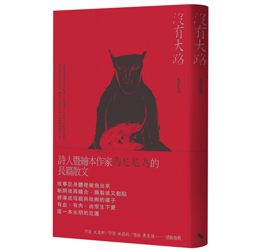 詩人暨繪本作家馬尼尼為的直覺式衝擊,以創作為刀,剪下生命記憶,時空、色彩、氣味、聲響,任情緒與意識流瀉,碎裂的句子、段落、詩句和畫作彼此交疊覆蓋,冰熱刺痛、酸甜苦鹹,張貼成一本三萬多字的散文,保存下遠方斑駁的母親。