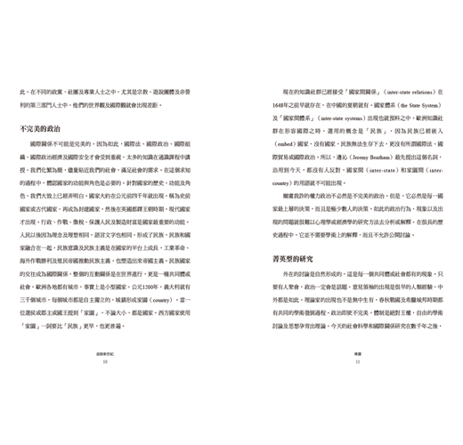 國際關係不可能是完美的。因為如此,國際法、國際政治、國際組織、國際政治經濟及國際安全才會受到重視,太多的知識在通識課程中講授,我們化繁為簡,儘量貼近我們的社會,滿足社會的需求。在這個求知的過程中,體認國家的功能與角色是必要的。針對國家的歷史、功能及角色,我們大致上已經弄明白。國家大約在公元前四千年就出現,稱為史前國家或古代國家,再成為封建國家,然後在英國都鐸王朝時期,現代國家才出現。行政、作戰、徵稅、保護人民及製造財富是國家最重要的功能。人民以後因為理念及理想相同,語言文字也相同,形成了民族,民族和國家融合在一起,民族意識及民族主義是在國家的平台上成長,工業革命、海外作戰勝利及殖民帝國推動民族主義,也塑造出來帝國主義。民族國家的交往成為國際關係,整個的互動關係是在世界進行,更是一種共同體或社會,歐洲各地都有城市,事實上是小型國家。公元1200年,義大利就有三千個城市,每個城市都是自主獨立的,城鎮形成家園(country)。當一位選侯或郡主或國王提到「家園」,不論大小,都是國家。西方國家使用「家園」一詞要比「民族」更早,也更普遍。