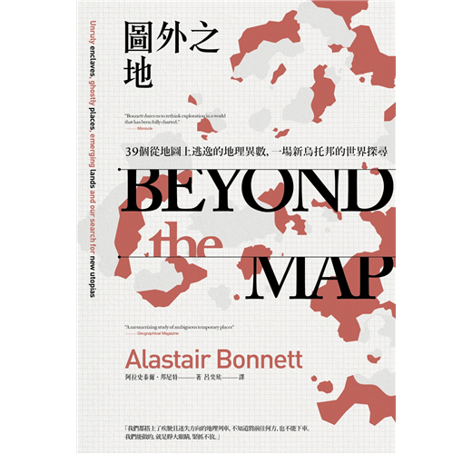 「自有地理學起,人就著迷於奇特不凡之地。」即使進入了數位當道的年代,我們對來自遙遠異地之奇聞軼事的喜愛,從古至今未消。而英國新堡大學地理學教授阿拉史泰爾.邦尼特(Alastair Bonnett)秉持著他對「地方」異於常人的愛好及觀察,寫出了《地圖之外》(Off The Map)一書,以結合詩意、幽默和實際考據的文字打破讀者對「地理」、「地方」的想像,暢銷全球。而在《圖外之地》(Beyond The Map)這本更精采的續作中,他繼續深入探索五大類別--「難以掌控的島嶼」、「飛地與不確定的國度」、「烏托邦之地」、「幽冥之地」、「隱藏的地方」,一共39個我們無法在地圖上真正看見全貌的地點,其中包括--