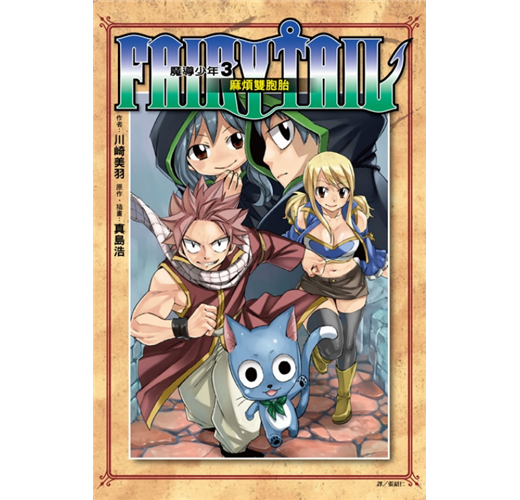 背離常識、自由奔放、橫衝直撞、無堅不摧,眾所皆知的帥氣魔導士公會──它的名字就叫做『妖精尾巴』!今天的公會酒場一樣吵個不停,卻有兩個奇怪的小孩子闖了進來!詳細一問,才知道他們在找自己的父母。納茲一行人憑著有限的線索,出門尋找他們的父母,一路來到了海港城鎮哈魯吉翁,卻在那裡遭到一群神秘男子襲擊。而且敵方竟然是從前曾擋在納茲面前的那個男人……他們的目標是妖精尾巴嗎?還是那對雙胞胎小孩!?而他們的真實身分又是如何!?真島浩公認的原創小說第三彈!