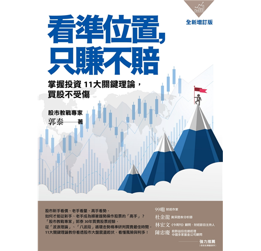 尤其是郭泰兄新推出的專著《看準位置,只賺不賠》,再進一步提供了要在股海爭戰致勝賺錢的完整理論依據,還可讓投資人強化在市場中的獨立作戰能力。