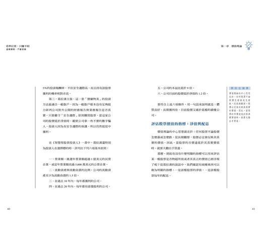 所以我相信,只要讀者有足夠的決心跟毅力,確實有機會在短時間內,透過有系統的閱讀,掌握到投資最重要的觀念及原則。