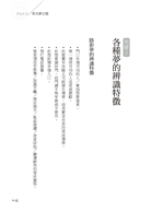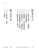 本書提供了向夢境提問的例句速檢表、各種夢的辨識特徵,