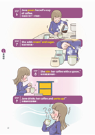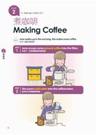 本書分成「吃吃喝喝」、「裝扮外出」、「居家日常」、「交通旅遊」、「生活節慶」、「運動休閒」等6大主題,精選100個主題單元,每一單元均配有9個全彩插圖。這種圖像式的步驟式學習,讓讀者就像是在看漫畫或圖畫書一樣輕鬆,只要跟著步驟Step by step,就能用最精簡的句子將這個情境單元裡所發生的事清楚地表達出來。