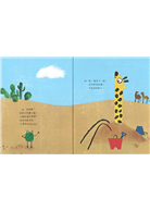 1. 前扉:預告故事地圖,沙灘的指示路標就近在眼前,有經驗的領路人青蛙在體型上略遜一籌,長頸鹿眼神的方向是盲目的向前,青蛙完全無法阻止他,只能一路相隨。