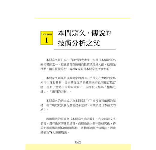 酒田戰法的原書為《本間宗久翁密錄》,內文以純文字表現,沒有任何的圖形呈現,...