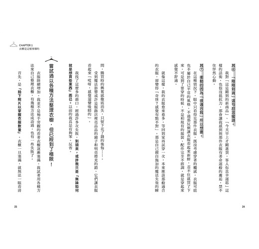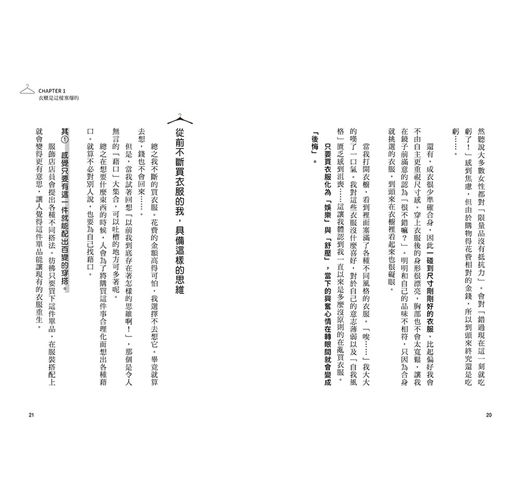 很多人都有「衣櫥快爆炸了卻選不到衣服穿」、「嘗試過各種衣櫥整理方法,但還是以失敗告終」的煩惱,本書作者也曾深深為此所苦,但她在挑戰一整年不買衣服後發現「我找到了能夠打從心底說出喜歡、具有自我特色的服裝風格!」