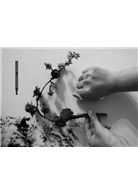 第二次為動物傷神,是國小自然課發的蠶寶寶,軟嫩的身軀一節節地蠕動,在相對巨大的葉子上緩慢進食,每次課堂間我都會把紙盒子拿出來,看著牠們進食的畫面出神;那畫面安靜且迷離。蠶寶寶沿著葉脈咬出細長的缺口,像是一條隱形的道路,空缺的部份反倒成為視線中的焦距。咀嚼式口器不斷開合,像是規律的儀式,牠們咬出我心裡的破口,破口成為一灘深淵,我以肉身酗著它。