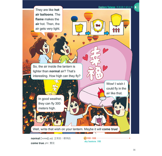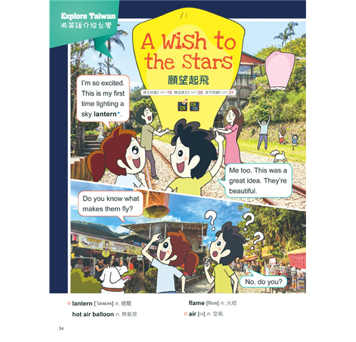 以簡短的對話和文章介紹台灣景點,不僅讓小朋友更了解在地風情,也能用簡單確切的英文來介紹台灣。