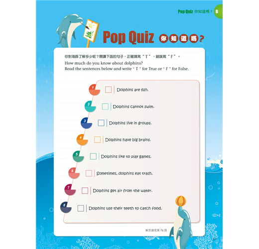 內容以自然科學為主,例如動物、植物等,包含圖解單字、知識大考驗、手動勞作還有延伸閱讀,在玩樂中學習,事半功倍。本期主題介紹大家最喜愛的「海豚」。