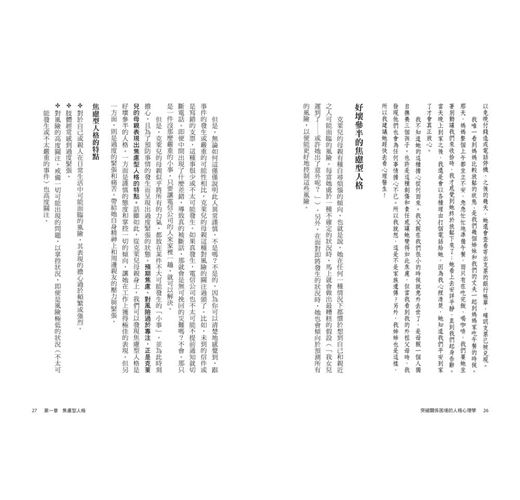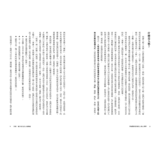 本書從精神病學和心理治療的角度出發,說明11種常見的人格障礙類型。以淺顯易懂的口吻和大量臨床案例說明的方式,期盼幫助更多人走進人格障礙者的內心世界。