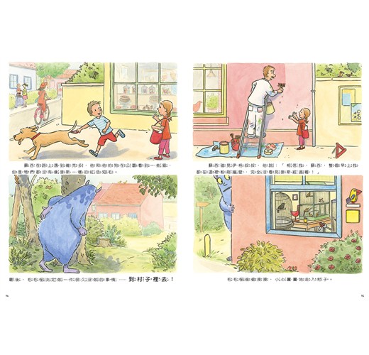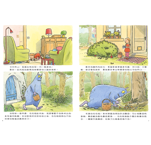 本來有點擔心雙主線的故事設計對我們四歲的兒子來說太難了,結果發現他完全能理解內容,讀完一遍故事後馬上又要求再唸一遍,而且好喜歡學著說毛毛怪的怪獸語!―― Children's book blog family library部落格版主