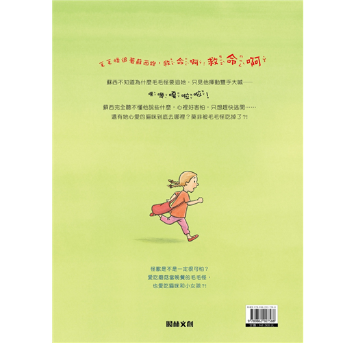 本書用最少的文字、最豐富的圖片傳達故事的意涵:不要以貌取人,因為事情的表面往往和真相不同!故事從小女孩蘇西和毛毛怪的角度同時展開,直到最後相遇的過程讓故事變得更加精采!雙主線劇情的編排讓讀者得以全面瞭解故事,因此我們的小讀者都迫不及地想要知道小女孩蘇西和毛毛怪最後的發展,急著想要知道結局,是個讀起來非常有趣的繪本! ―― Children’s book Box部落...
