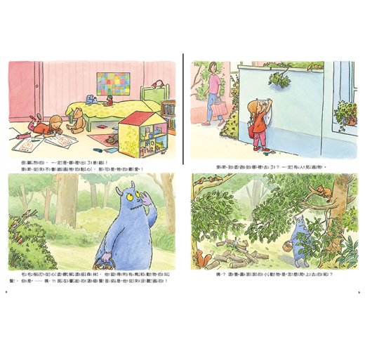2.藉由尋獲貓咪的驚喜,破除常人對怪獸的偏見──提醒孩子不要以貌取人,學習用不同角度觀察事物。