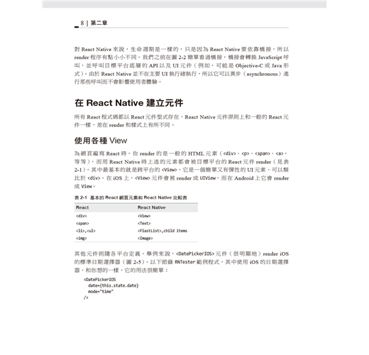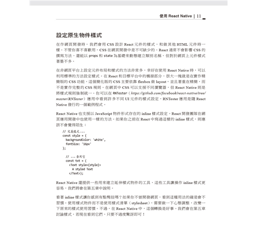 ‧建立你自有的React Native元件和應用程式,並設其樣式