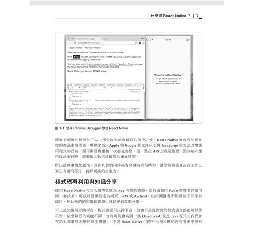 “對於想擴展到原生開發的React工作者,《React Native學習手冊》是你必讀的一本書。所有建立可量產的原生應用程式所需的知識,Eisenmen都在本書中仔細道盡。