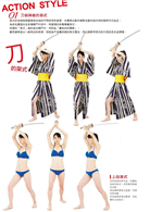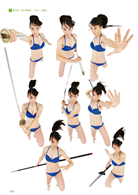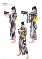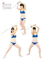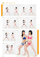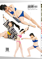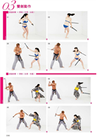 書中的動作分解圖,包含了全景、側面等多種角度,模特兒的服裝也有和服、比基尼、空手道服等三種變化,讓創作者能更容易觀察人物動態的肌肉線條變化,以及參考衣服的躍動感。