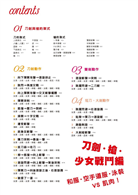 本書以日本刀、雙刀、大劍、長槍、各式槍械、三節棍…等各式武器為主題,並邀請了有武術底子的日本美女模特兒-宮原華音,和專業的武術動作指導、格鬥家、演員,拍攝各種帥氣的戰鬥場面的動作分解圖。