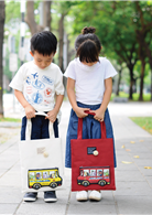 「書袋」的簡易托特包款,搭配可愛的汽車圖案造型筆袋,讓孩童的上學日增添了不少的樂趣;