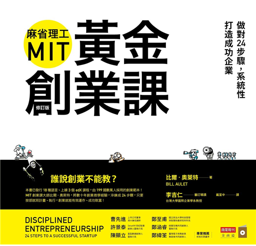 創業成功的必要條件在於紀律(Discipline)。從《獲利世代(Business Model Generation)》到《精實創業(Lean Startup)》都主張要有紀律地思考、計畫與驗證,《麻省理工MIT黃金創業課》可謂集其大成,不僅採用系統化的思考、提供完整的創業工具箱,更發展出《麻省理工MIT黃金創業實踐攻略》24步驟的嚴守創業紀律圖,特別適合喜歡按部就班、注重方法步驟的創業者參考。──上市公司董事、港大兼任講師、 《一個人的獲利模式(Business Model You)》編譯