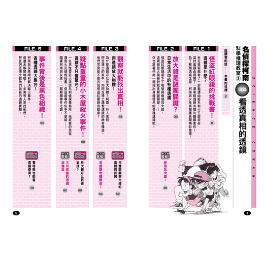 小小透鏡大學問,透鏡器材能夠解決多少生活中的謎團呢?讓少年偵探團帶給您一場又一場妙趣橫生的科學冒險,並破解柯南提出的挑戰書吧!