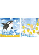 插圖一樣顏色鮮明、角色惹人喜愛,作者真的很厲害,版面雖不大,兩種不同大鯨魚的畫面,卻顯得超有魄力!最後一頁野貓們做著焊接的工作,感覺這八隻野貓還真是無所不能啊!每回都有不同行業職人的影子,野貓認真工作的樣子,愈看愈可愛!不過每次書都還沒看完,就已經流了滿嘴口水啊!天氣熱,我也來去吃吃冰淇淋囉!