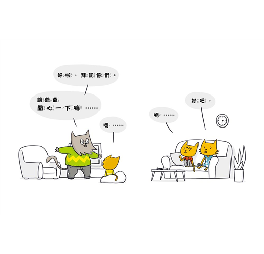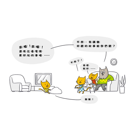 爺爺並沒有否定孩子想看電視的行為,也沒有用「權威」嚴厲禁止。他告訴孫子有比看電視更好玩的事。有多好玩?他親身示範,和孫子做朋友,一起創作趣味滿分、獨一無二的故事。