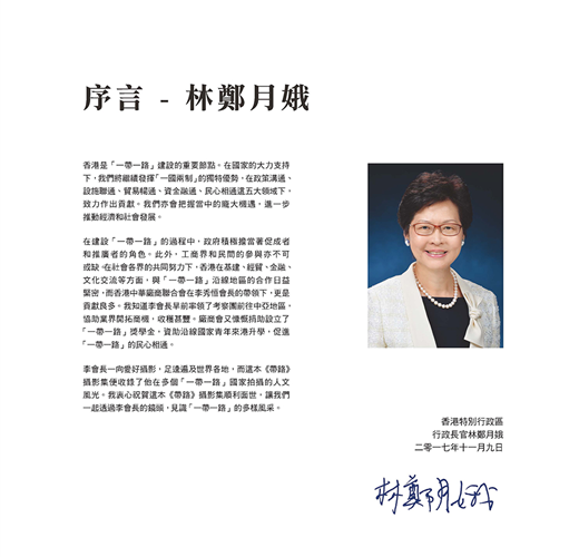 而自從中國提出「一帶一路」倡議之後,李博士決意 以鏡頭記錄一帶一路沿線的風貌、人情及市場, 建立較為全面的影像記錄。香港特區政府商務及經濟 發展局亦借用了他的攝影作品,用作官方網頁及社交 網站上對一帶一路的介紹資料。2017年9月,李博士 更被官方委任為「一帶一路」委員會的委員之一。