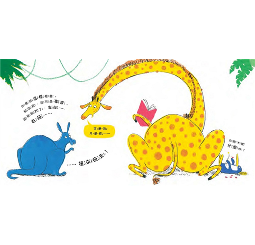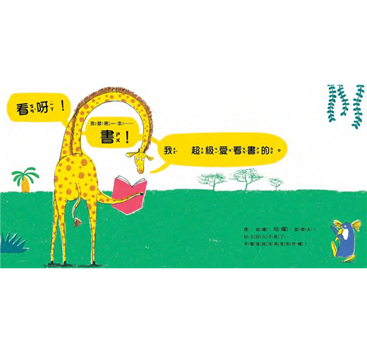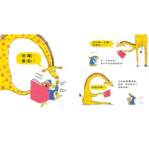 長頸鹿歐樂夫發現了一本書,超級興奮。