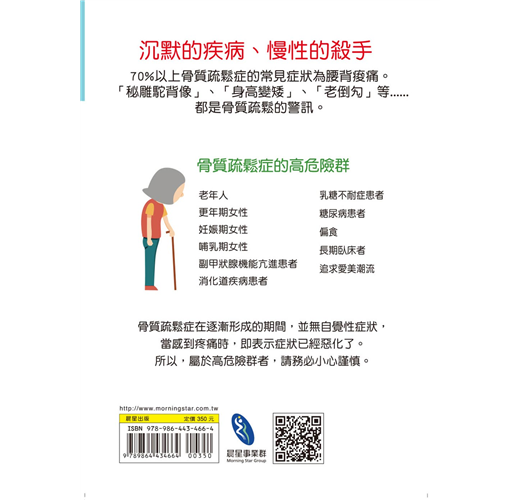 2.完整收錄關於骨質疏鬆症的各種症狀、成因、併發症以及預防與治療的方法。