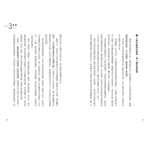 書中不僅提供了相當珍貴的第一手觀察筆記,亦透過各國動物中途之家的經驗和想法,試圖以他山之石對照日本經驗,思考改進與突破的可能;另一方面,這些對話和分享,更示範了「動物議題無國界」的精神,而這個概念,或許是打破動物保護長期困境的關鍵之一。