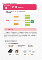 每章文法概念的開頭都有樹狀圖,幫助考生理解抽象的文法分類架構,閱讀內文時,得以隨時往前查閱自己讀到文法的哪一部份;樹狀圖旁邊重點標註對應的 660 分/760 分/860 分多益文法分數,讓考生可以節省時間,專攻目標分數的必考文法。
