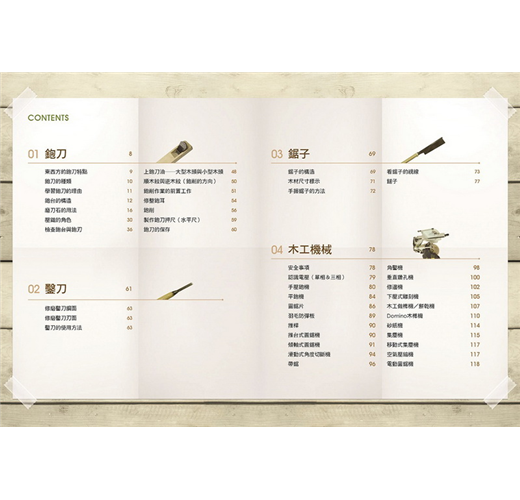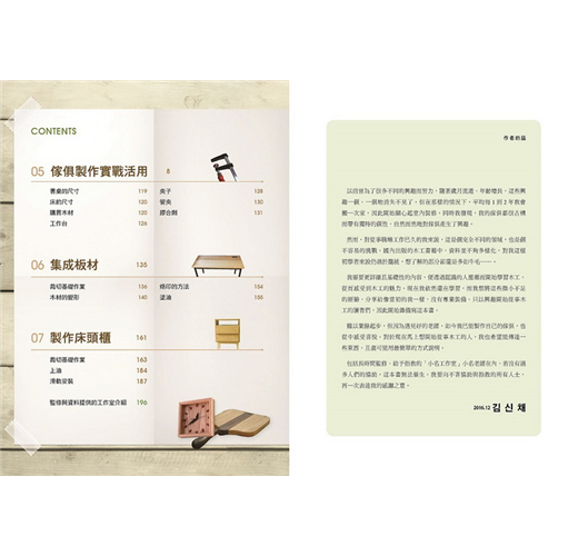 作者金信采是個標準的上班族,因為對製作傢俱相當感興趣,於是利用空閒的時間,開始正式拜師學藝,更是把製作傢俱當作生活般經營。本書由有木工製作三十年經驗的柳五賢先生監修,收錄最基本的木工常識,包括鉋刀、鋸子到鑿刀,傳統工具與機械工具的活用方式,最適合初次接觸木工的初學者,容易上手的內容是最大的特色。