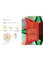 只要左邊完成一個摺紙動作,右邊也需相對應的摺紙動作。將數個重複形狀的摺紙,以片片交集的方式重疊黏貼,就會排列出非常奇妙的星狀幾何圖形。不論如何複雜的幾何圖形,全都來自於簡單的基本摺紙動作,重點是不斷重複且均勻完成平衡性的步驟。