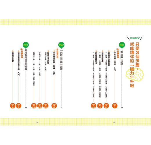 Chapter1 喚醒剩下未使用97%腦力的方法? ●你的大腦只使用3%而已 ●活化右腦是提升腦力的關鍵 ●為什麼只透過聆聽就能活化大腦呢? ●腦力提升簡易3步驟 ●實踐過本書訓練方法的人士感言 ●透過大腦控制身心狀態 ●「音聲補給元素」&「水晶球」 Chapter2 只要3個步驟,就能讓你的「腦力」升級 ★Step1 「高速腦」訓練 【收錄內容】 ●「高速腦」訓練入門 ●超高速古典音樂(一般速、2倍速、4倍速、8倍速、16倍速、32倍速、64倍速) ●超高速歌劇(一般速、2倍速、4倍速、8倍速、16倍速、32倍速、64倍速) ●超高速繞...