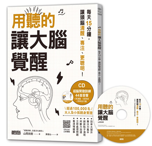日本第一育腦團體「超腦訓練」主持人山岡尚樹,用「聆聽」喚醒大腦,透過高速音聲、重疊的音聲、高周波音聲,找出每個人的先天潛能,從大人到小孩都可以輕鬆使用。