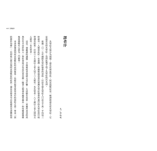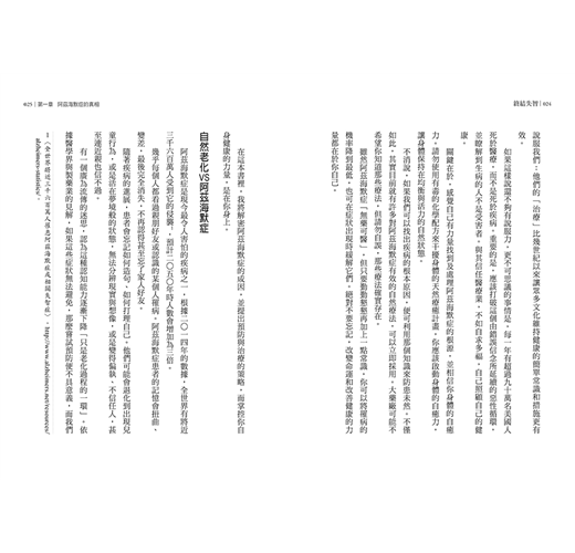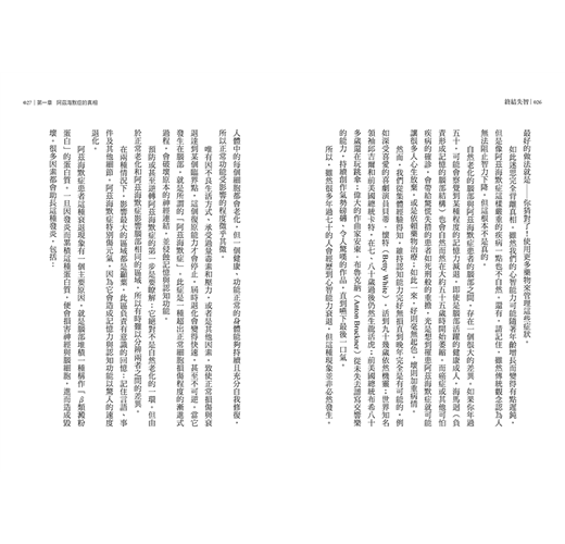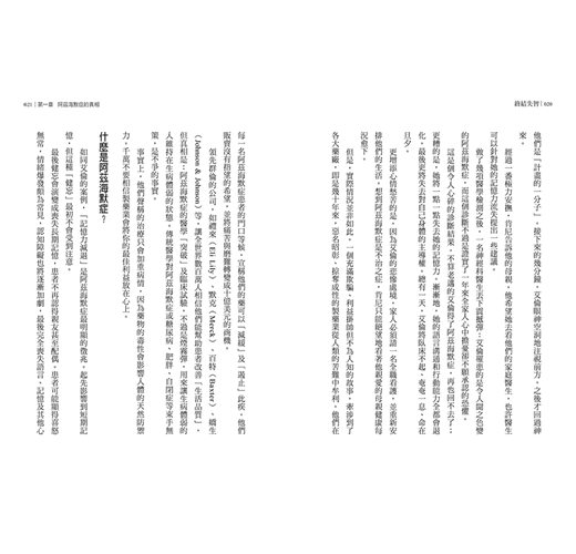 本書詳細說明阿茲海默症的現況、發病原因、預防與治療方式,並探討疾病與身心靈各個面向之間的關聯,力求讓讀者們知道:確實掌控自己的飲食、作息、運動情形、生活方式,乃至心理及靈性層面達到協調,才能免於疾病的侵擾,活出健康的晚年生活。