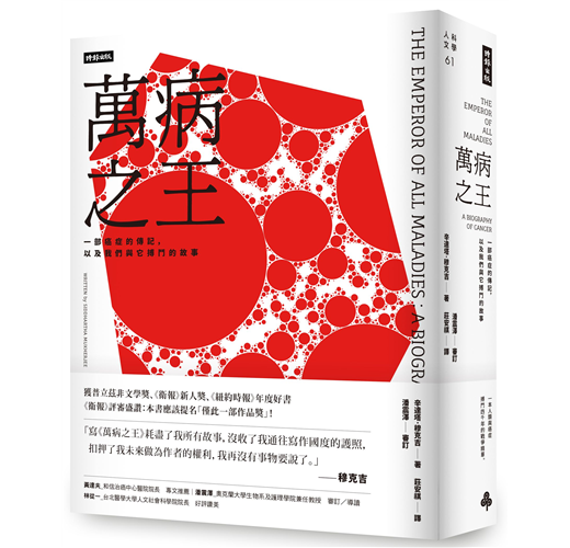 「疾病的科學與詩意很少能如此優雅地交織在一本博學多聞、引人入勝、而平易近人的書裡。穆克吉以精準清澄而深刻的同理心,覓得埋藏在癌症蹂躪中的美麗希望。」