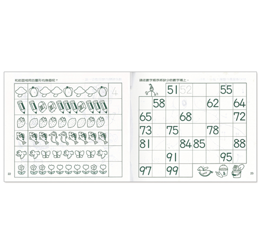 本書內容特別設計大小適中的練寫格,提供幼兒合適的練寫空間,使孩子能一邊熟悉數字的字形,學習正確的筆順和數量的概念,此外,最後面還有搭配活潑有趣的題型,加強訓練幼兒的邏輯思考能力。大小適中的練寫格