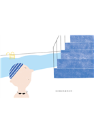 小男孩今天又來跳水了,穿著泳衣一階階走上跳水台,一邊想著這樣的自己。