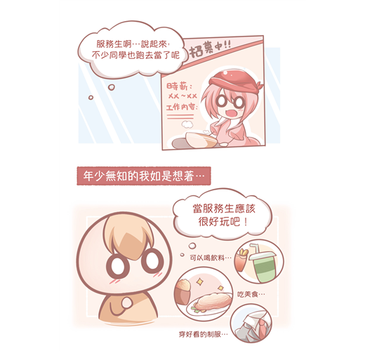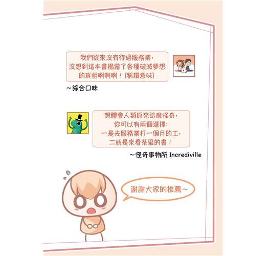 ●以輕鬆幽默與思考角度,描繪服務行業工作生活