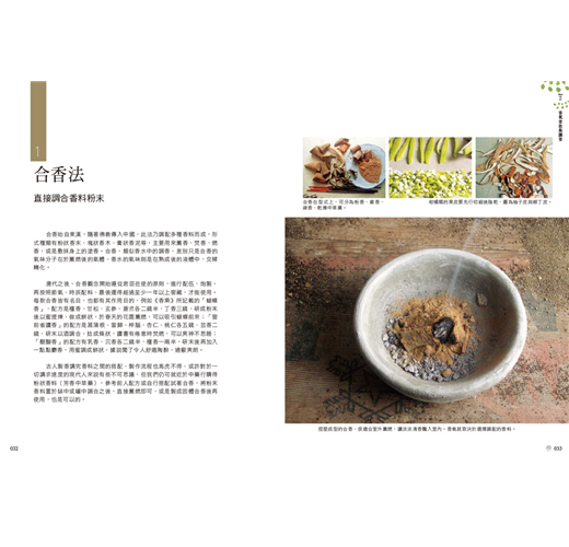 古人製香講究香料之間的搭配,製作流程也馬虎不得,或許對於一切講求速度的現代人來說有些不可思議,但我們仍可就近於中藥行購得粉狀香料(芳香中草藥),參考前人配方或自行搭配試著合香,將粉末香料置於缽中或罐中調和之後,直接薰燃即可,或是製成固體合香後再使用,也是可以的。