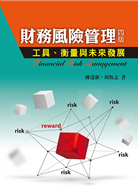 本書共分四篇十三章,第一篇討論財務風險的分類、意義、限制、與目的,複習基本的機率與統計概念,討論現今貨幣與金融市場主要的交易工具,以及介紹衍生性金融商品之種類與評價。第二篇討論市場風險的衡量方法,第三篇介紹信用風險與眾多的量化模型,第四篇說明巴塞爾協定的沿革、全方位風險管理、新型態風險管理工具等議題。