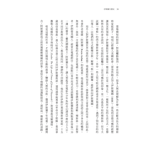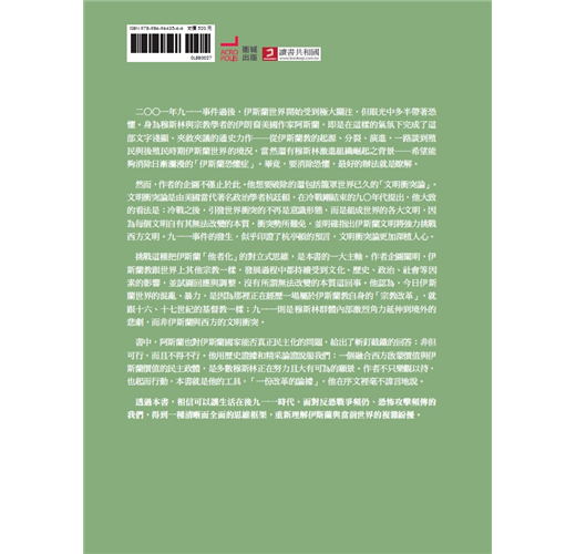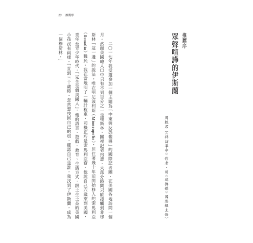 透過本書,相信可以讓生活在後九一一時代,面對反恐戰爭頻仍、恐怖攻擊頻傳的我們,得到一種清晰而全面的思維框架,重新理解伊斯蘭與當前世界的複雜紛擾。