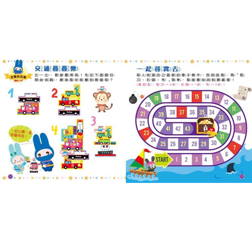 收納積木時,先試著讓孩子動動腦,自己拼拼看,如果遇到困難,可以參考遊戲書第一頁,上面有提示喔!多試幾次孩子就可以獨立完成,從中獲得成就感。
