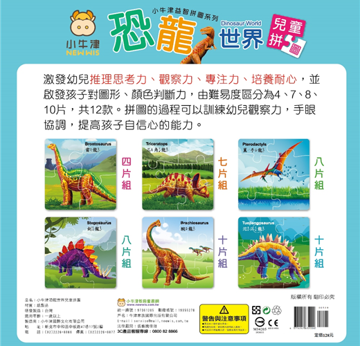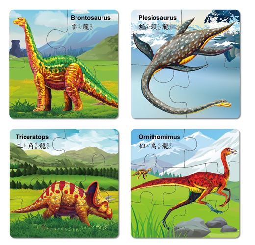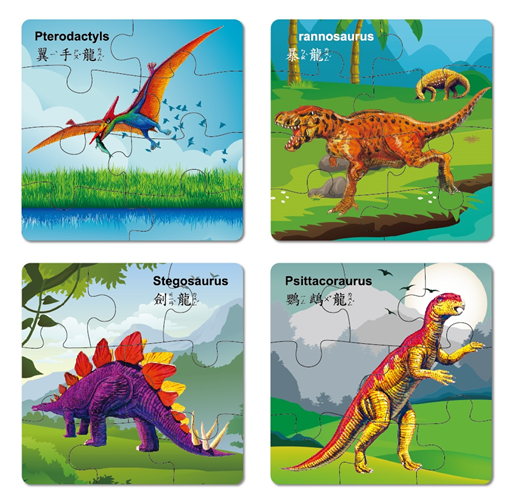 由難易度區分為4、7、8、10片,雙面圖案更增添變化性,拼圖的過程可以訓練幼兒觀察力、手眼協調,提高孩子自信心的能力。