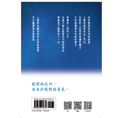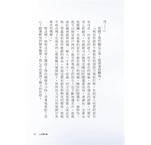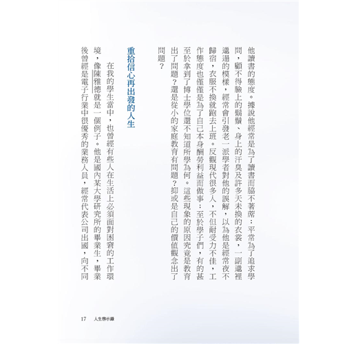 王薀老師以各行各業人士的親身經歷及所見所聞,從中發掘出人生顛撲不破的絕對真理,讀來令人興趣盎然,更能掌握人生道路的方向,絕對值得一讀!